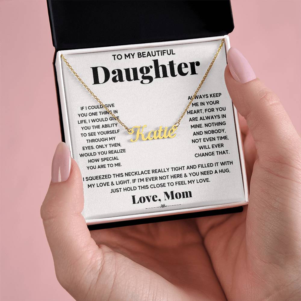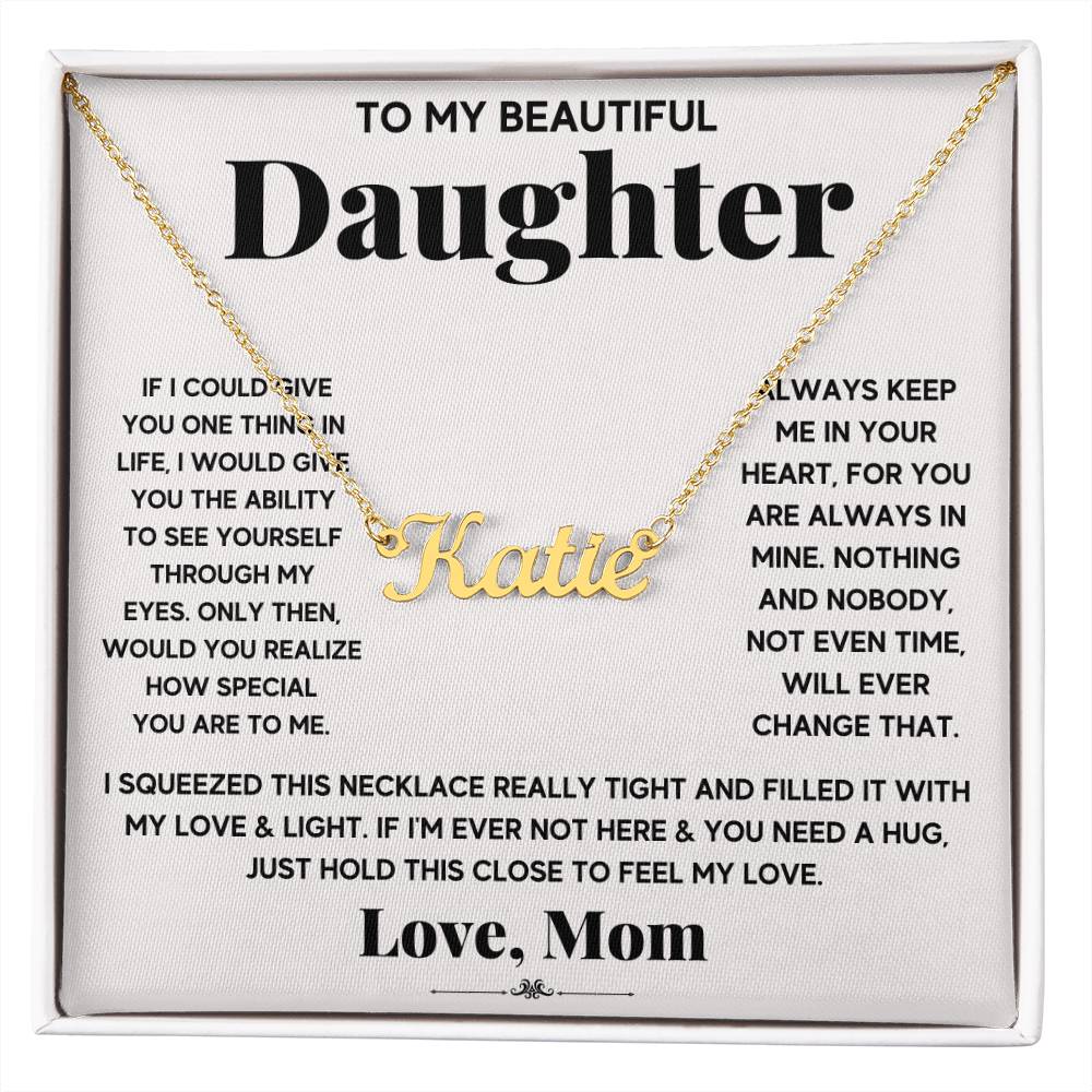 Give your special someone a custom necklace made just for them! Our Personalized Name Necklace is the perfect gift for your loved ones and will become a versatile accessory for any occasion. From a heart-warming holiday present, anniversary or birthday gift, or just because, this unique necklace adds a trendy touch to any outfit.