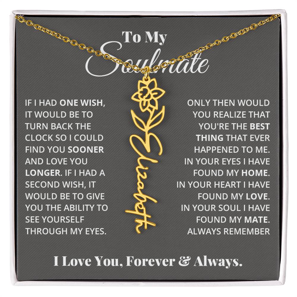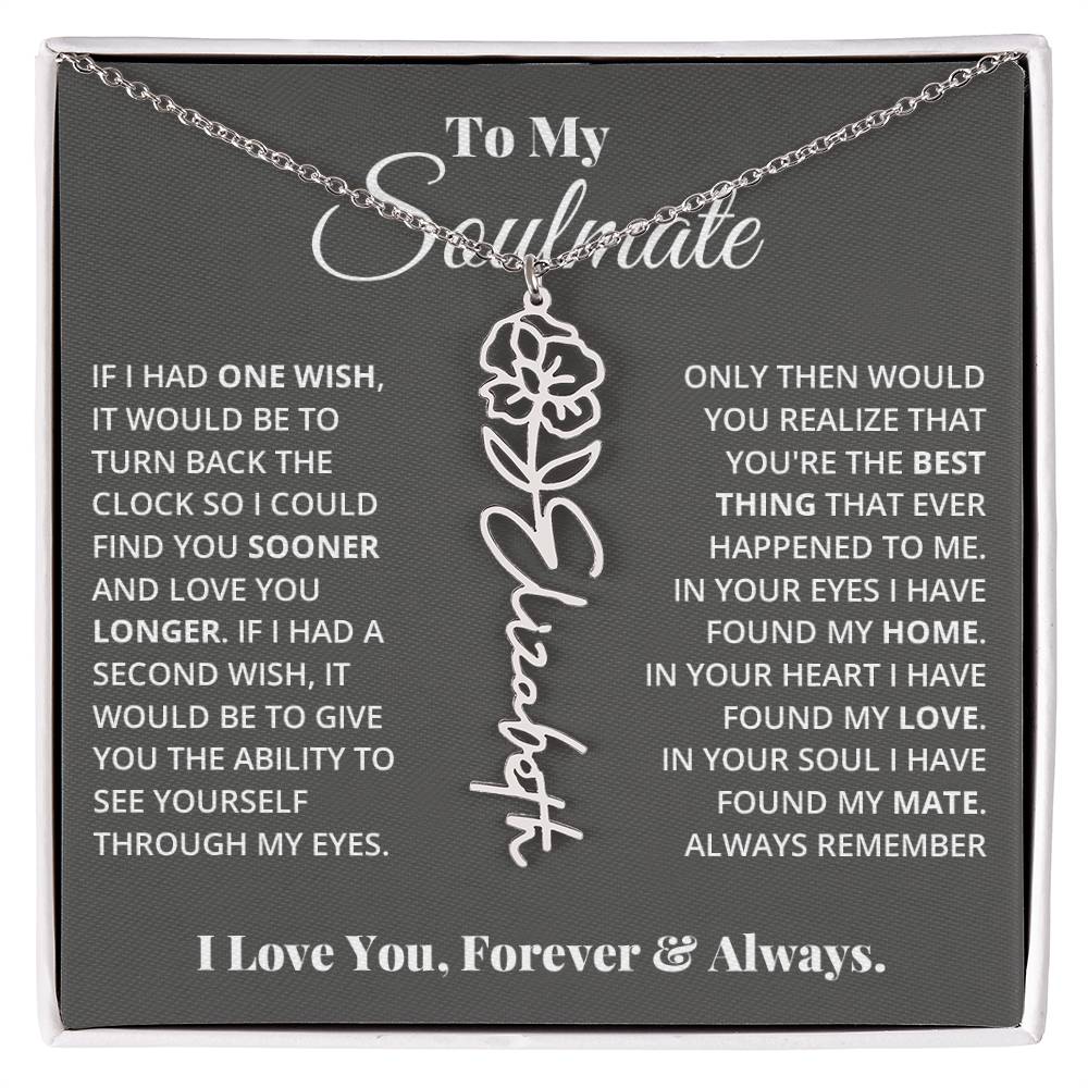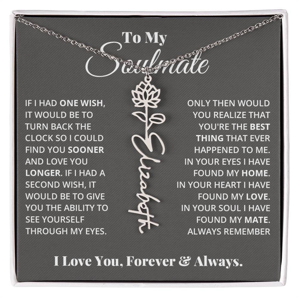 Need a gift that's as unique as she is? Then look no further than our Flower Name Necklace! With a customizable birth flower design, this necklace is a meaningful addition to any jewelry collection. Whether you're dressing up for a special occasion or simply want to add some flair to your everyday look, this necklace is perfect for your special someone. Handcrafted from high-quality materials, it is both stylish and durable. So why wait? Personalize your own floral name necklace today!