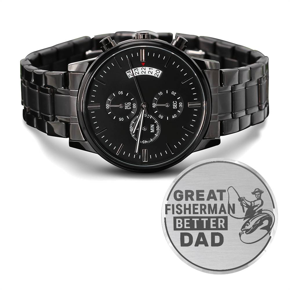 great fisherman better dad-Black Chronograph Watch with Engraving