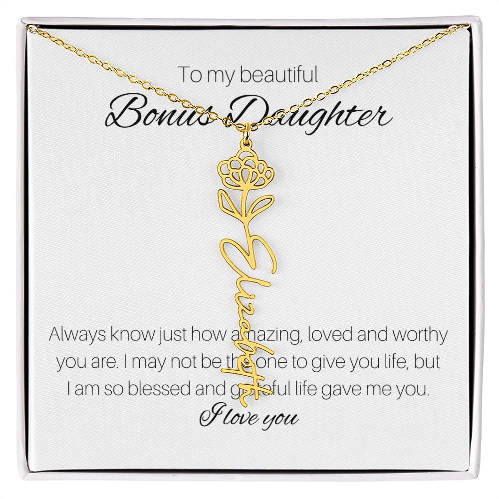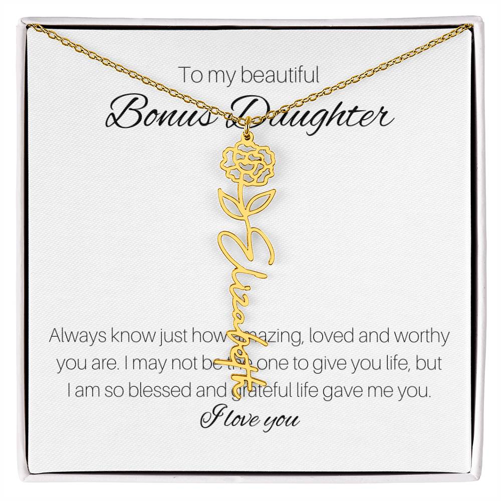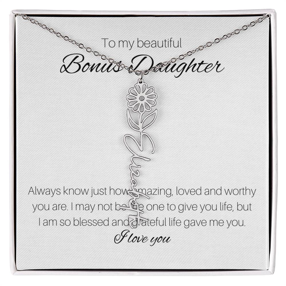 Need a gift that's as unique as she is? Then look no further than our Flower Name Necklace! With a customizable birth flower design, this necklace is a meaningful addition to any jewelry collection. Whether you're dressing up for a special occasion or simply want to add some flair to your everyday look, this necklace is perfect for your special someone. Handcrafted from high-quality materials, it is both stylish and durable. So why wait? Personalize your own floral name necklace today!