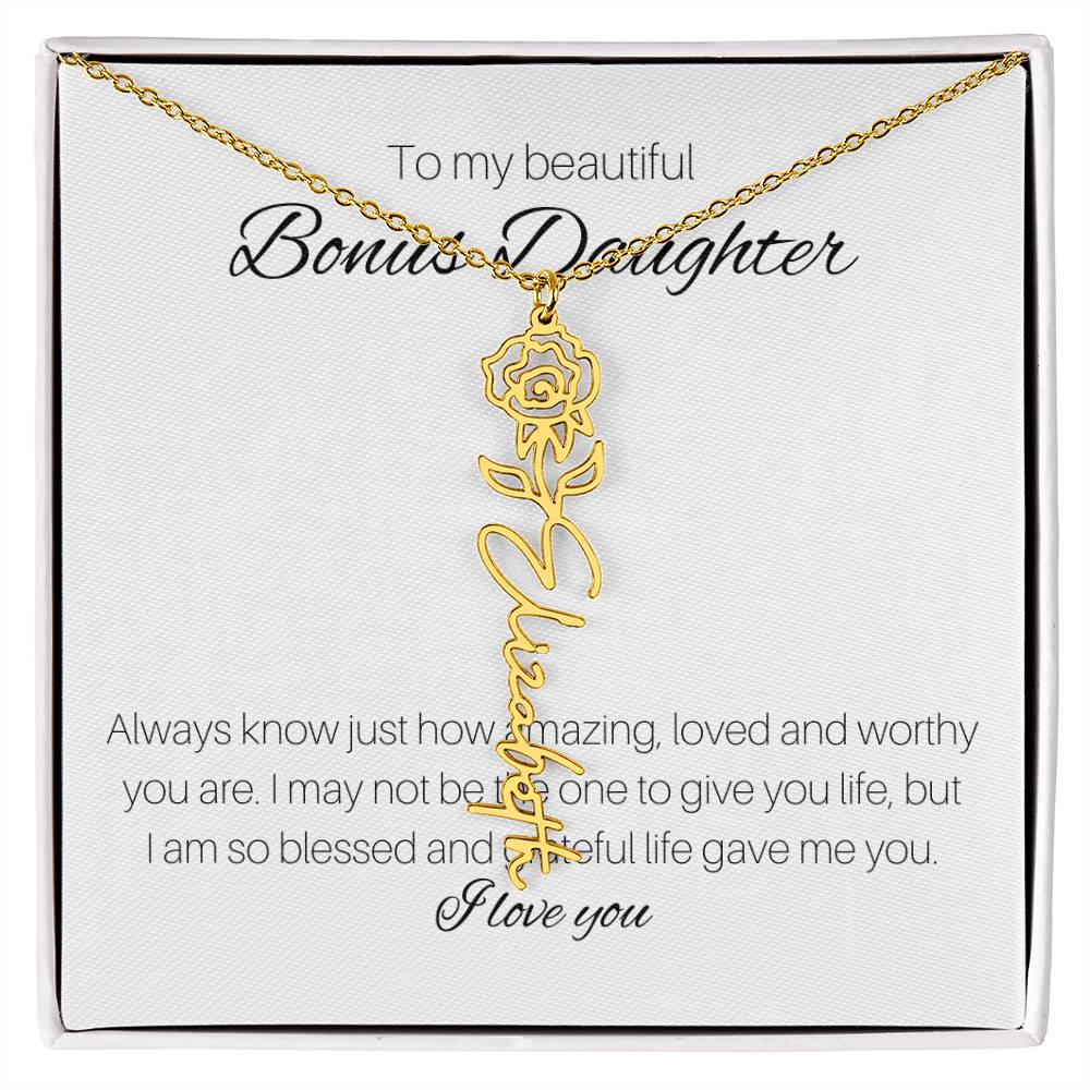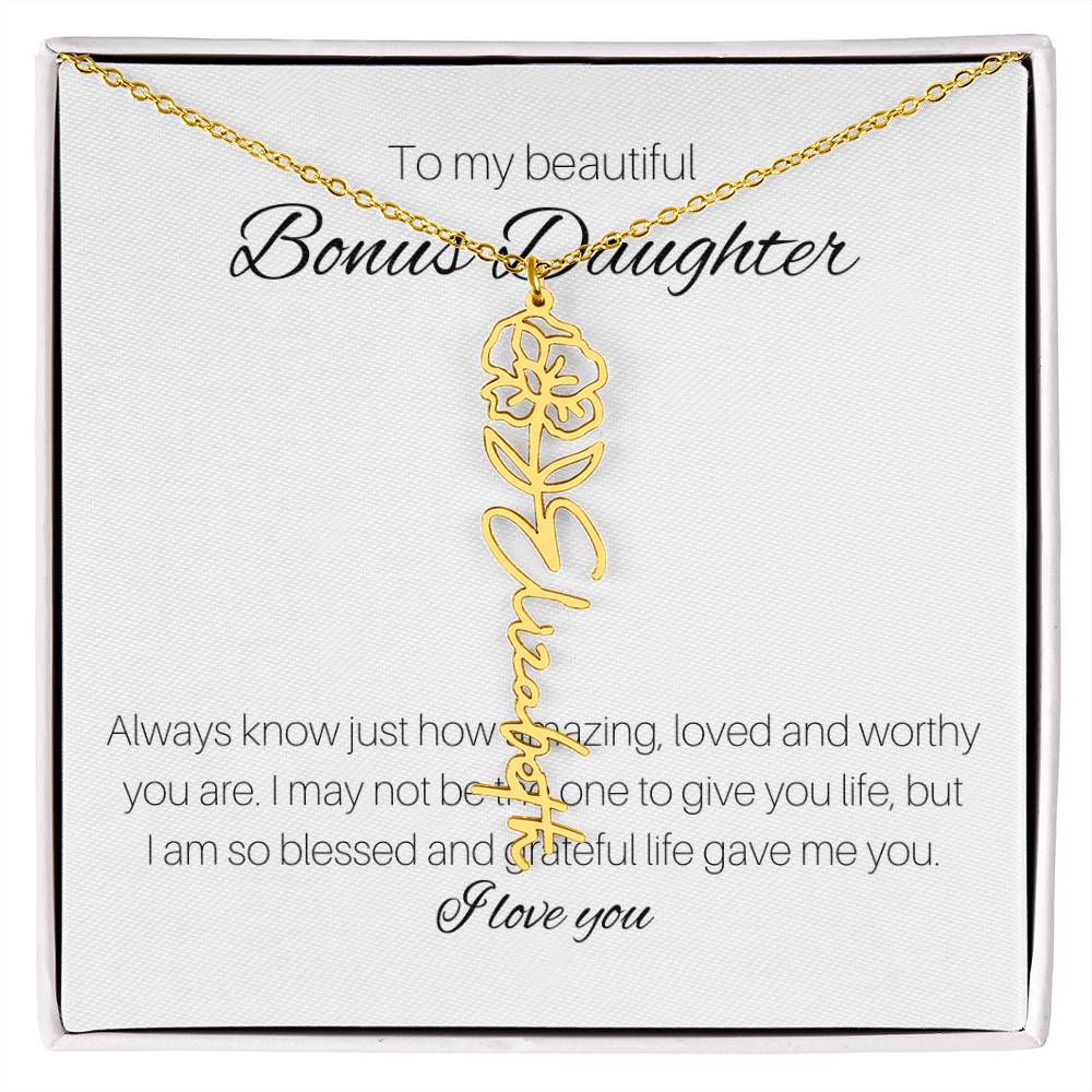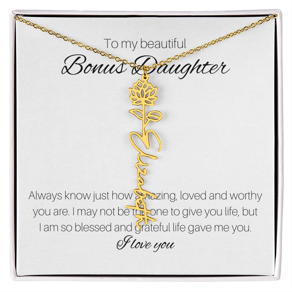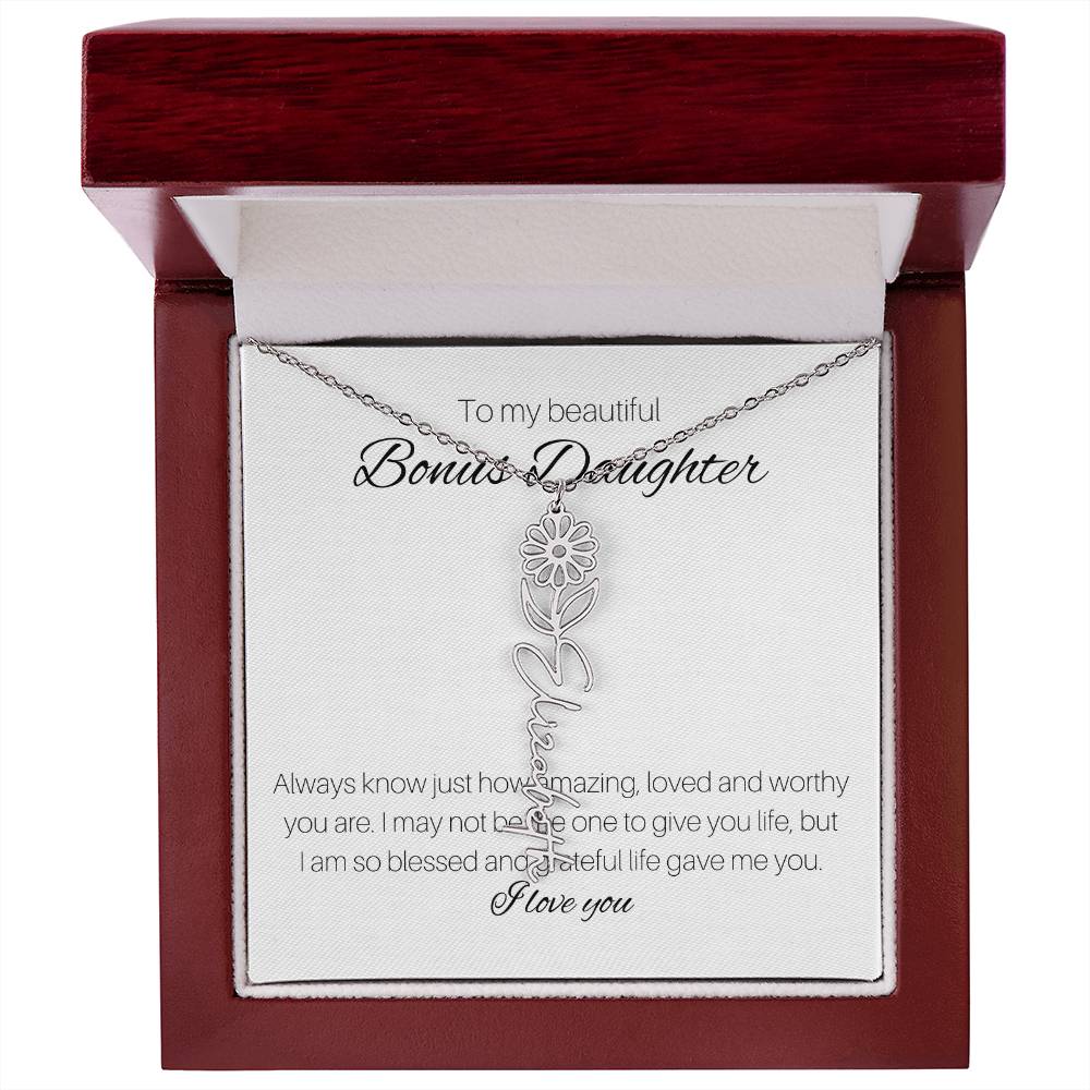 Need a gift that's as unique as she is? Then look no further than our Flower Name Necklace! With a customizable birth flower design, this necklace is a meaningful addition to any jewelry collection. Whether you're dressing up for a special occasion or simply want to add some flair to your everyday look, this necklace is perfect for your special someone. Handcrafted from high-quality materials, it is both stylish and durable. So why wait? Personalize your own floral name necklace today!