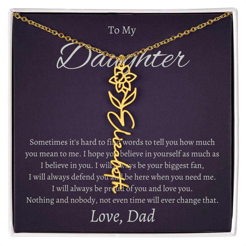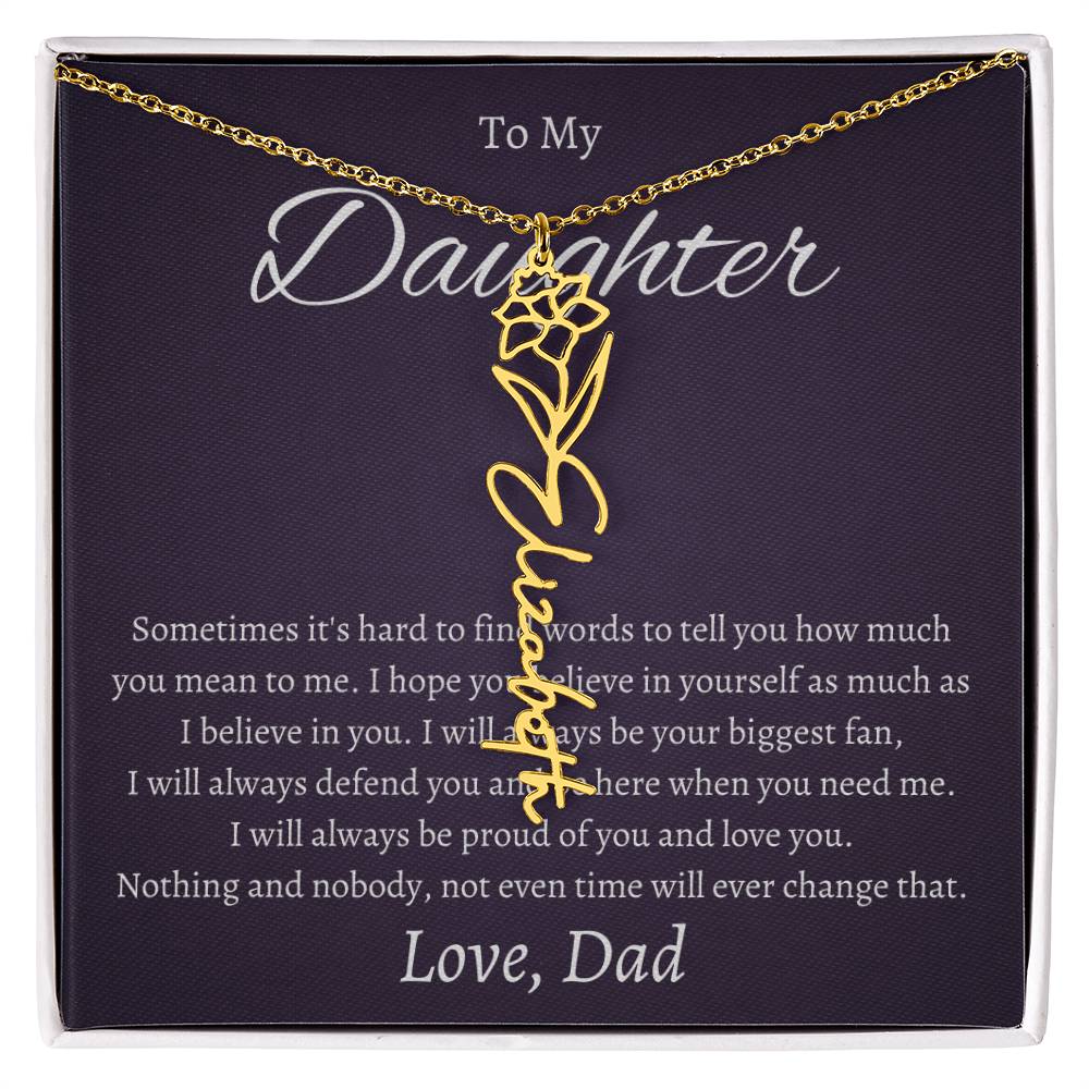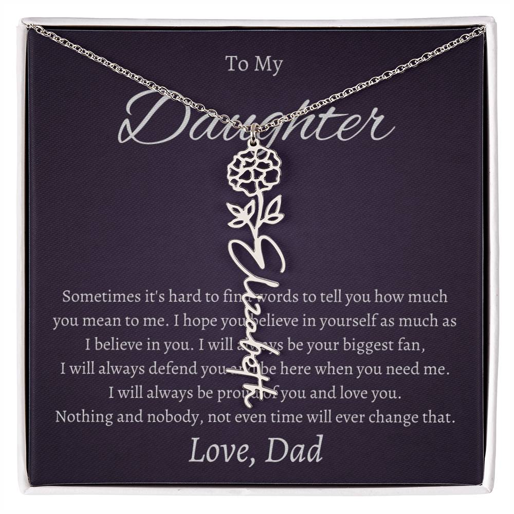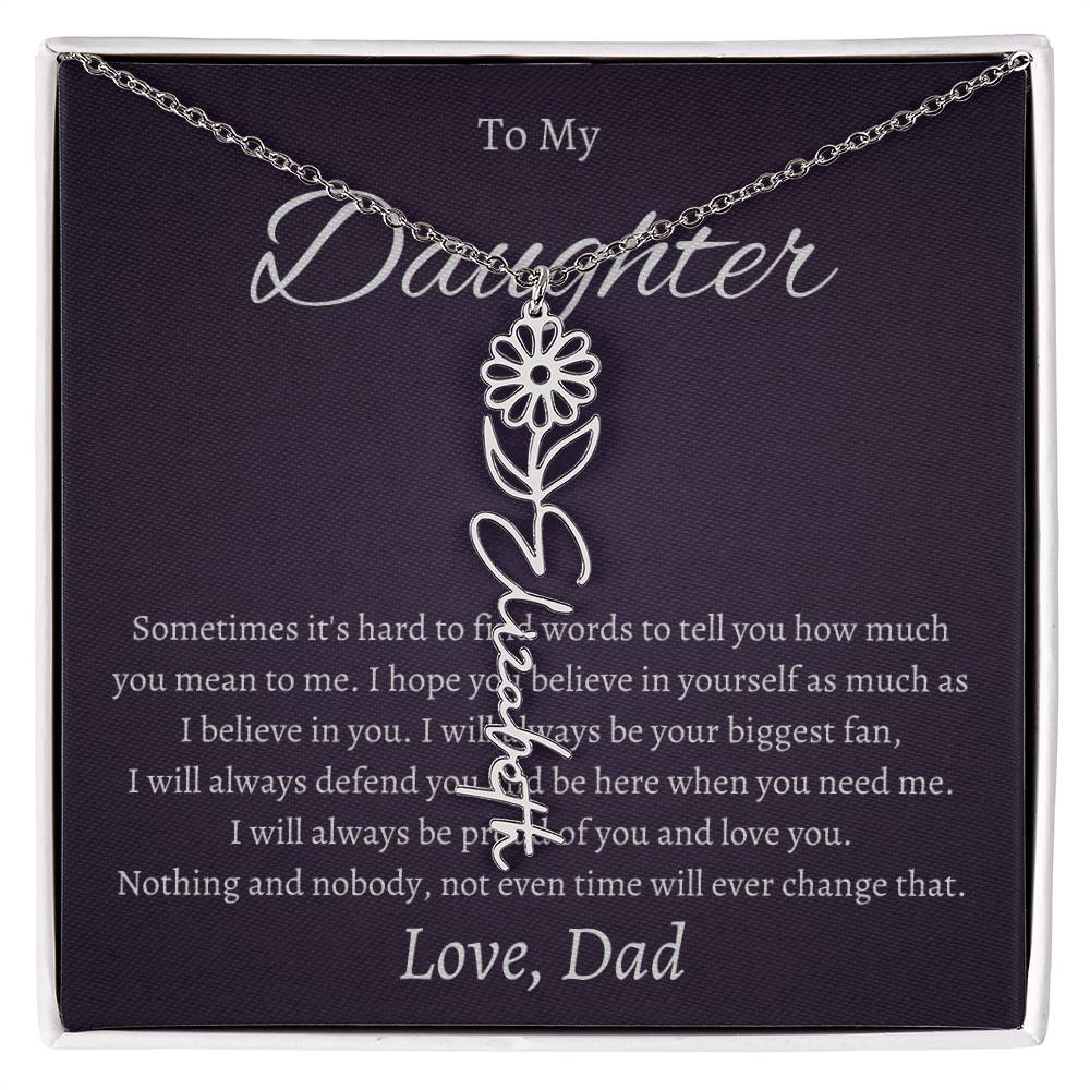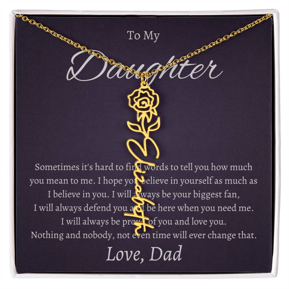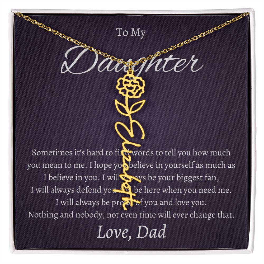 Need a gift that's as unique as she is? Then look no further than our Flower Name Necklace! With a customizable birth flower design, this necklace is a meaningful addition to any jewelry collection. Whether you're dressing up for a special occasion or simply want to add some flair to your everyday look, this necklace is perfect for your special someone. Handcrafted from high-quality materials, it is both stylish and durable. So why wait? Personalize your own floral name necklace today!