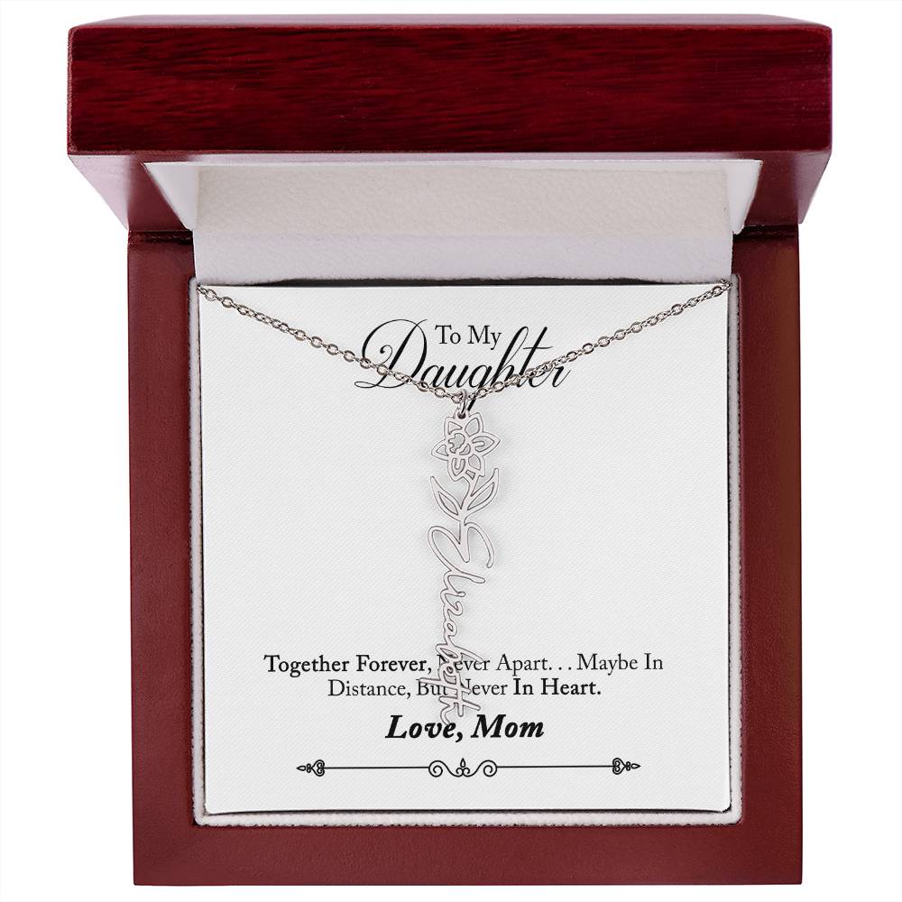 This stylish necklace features a cursive name design suspended on an 18”-20” adjustable cable chain, making it both personal and beautiful! Your necklace will be custom made upon ordering in the name or word of your choice, with up to 10 characters, and with the birth flower of your choosing. It's a gift that they will surely want to keep close to their heart forever!