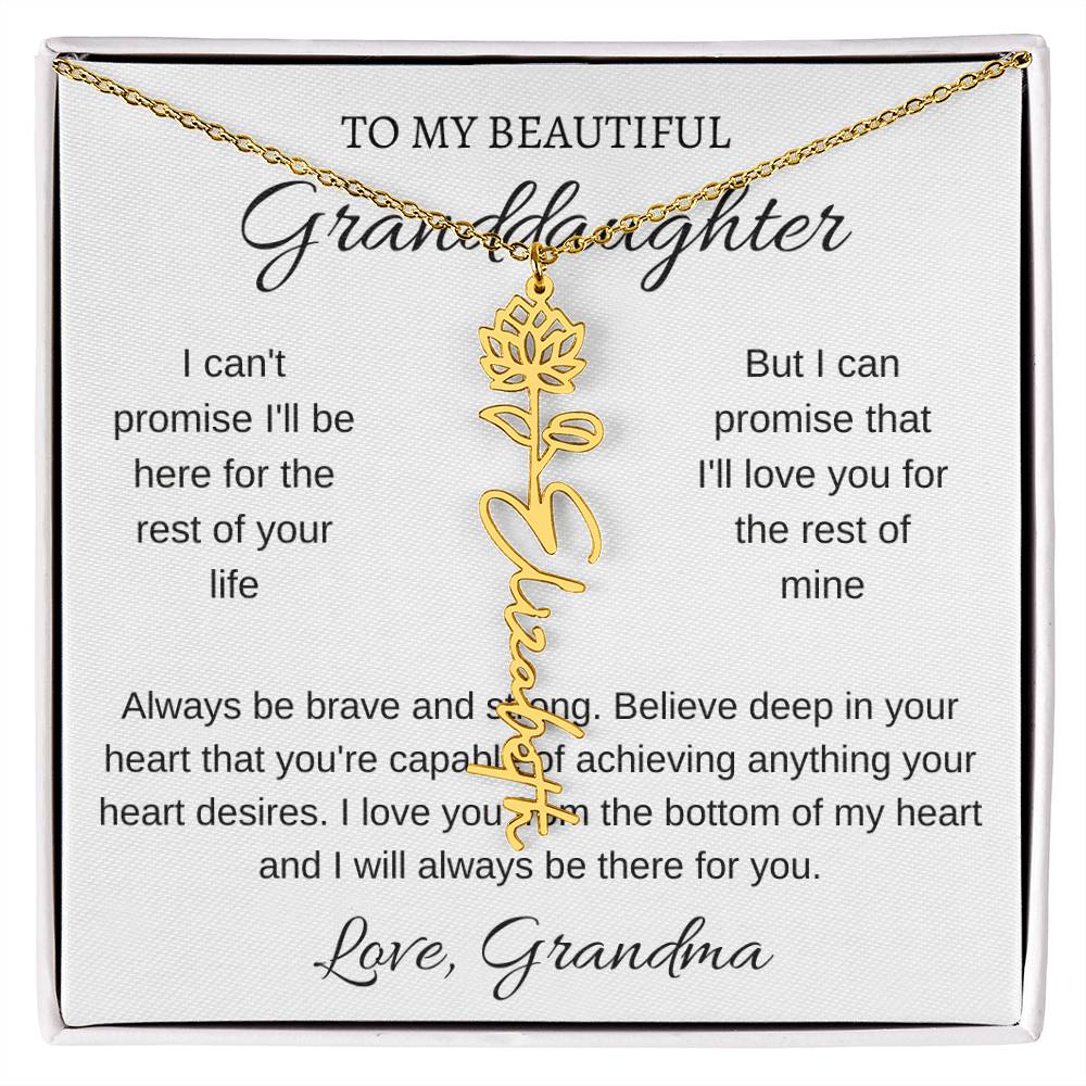 Need a gift that's as unique as she is? Then look no further than our Flower Name Necklace! With a customizable birth flower design, this necklace is a meaningful addition to any jewelry collection. Whether you're dressing up for a special occasion or simply want to add some flair to your everyday look, this necklace is perfect for your special someone. Handcrafted from high-quality materials, it is both stylish and durable. So why wait? Personalize your own floral name necklace today!